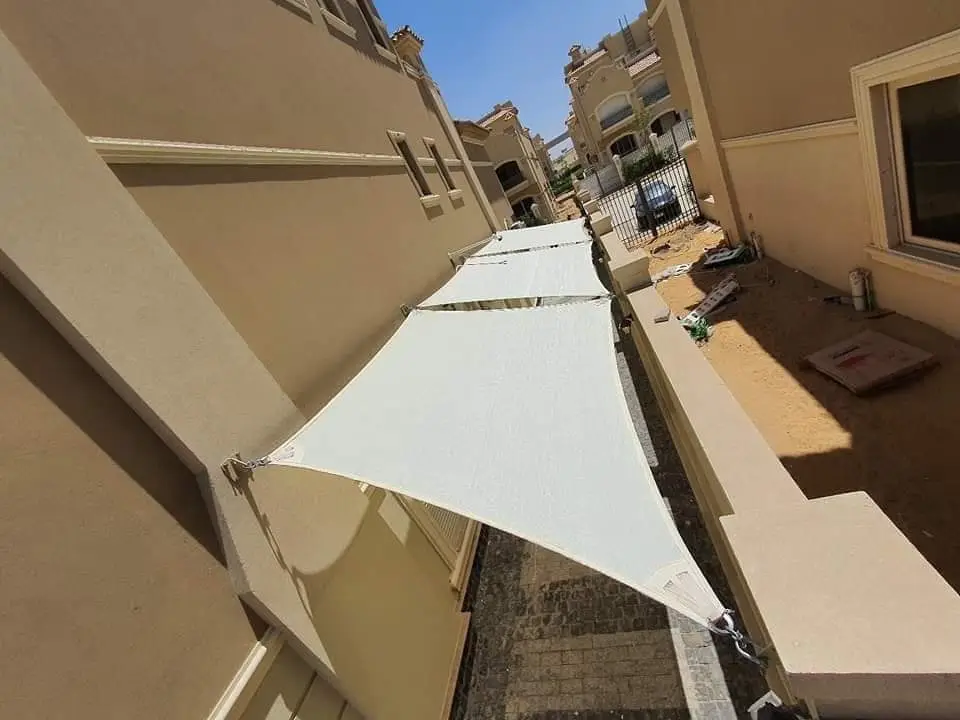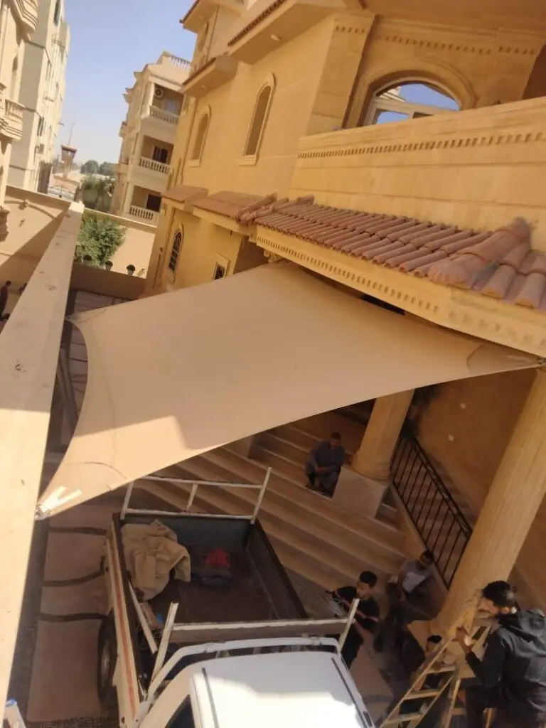 خامات فائقة التحمل: نستخدم أقمشة (Teflon أو PVC) المعالجة كيميائياً لمقاومة أقصى درجات الحرارة والرياح دون تمدد أو تلف.