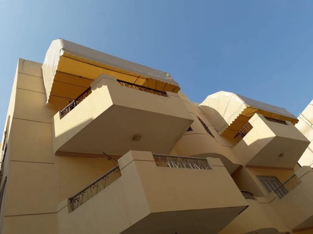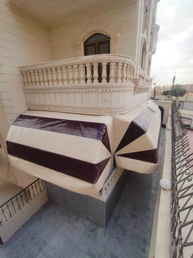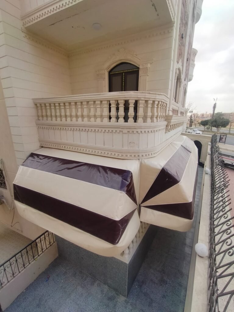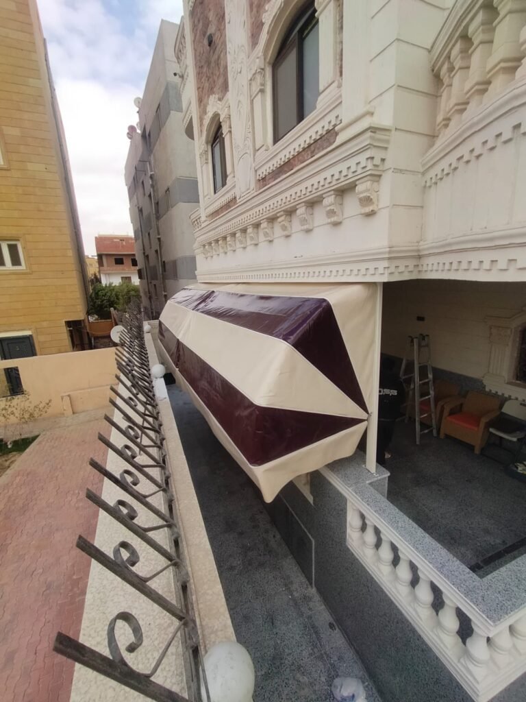 تصميم انسيابي: زاوية ميل هندسية تضمن حماية تامة من الشمس والأمطار مع الحفاظ على تهوية المكان.