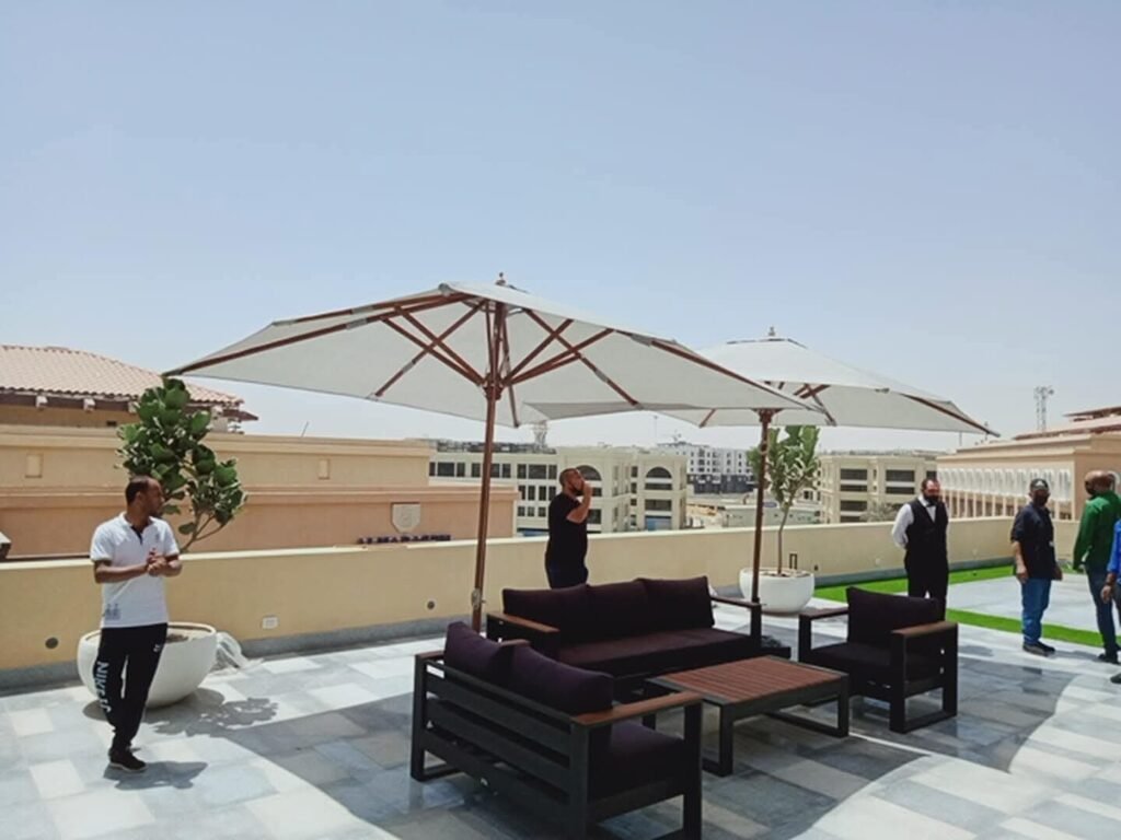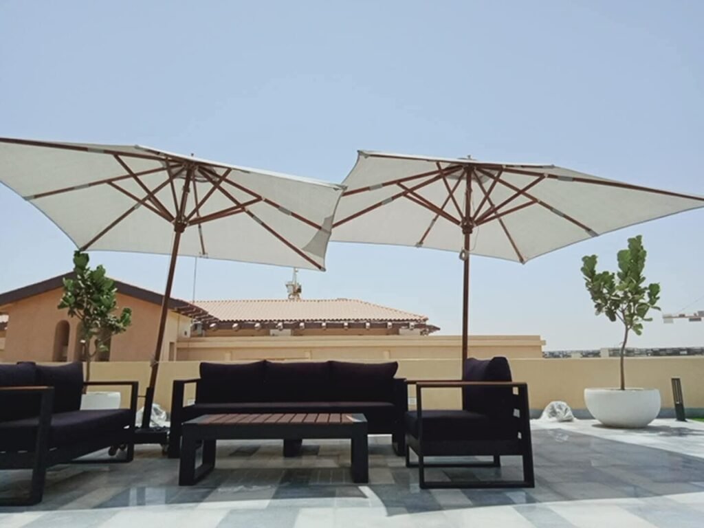 خلي قعدتك الخارجية (الحديقة، الروف، أو المسبح) أجمل وأبرد مع أحدث تشكيلة من الشماسي الخارجية: